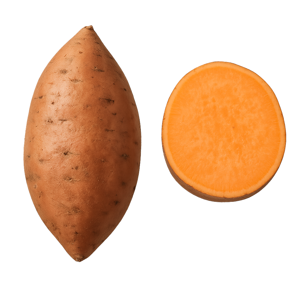 Egzotyczna bulwa o intensywnie pomarańczowym wnętrzu, ceniona za swój kremowy, naturalnie słodki smak oraz potężną dawkę beta-karotenu.