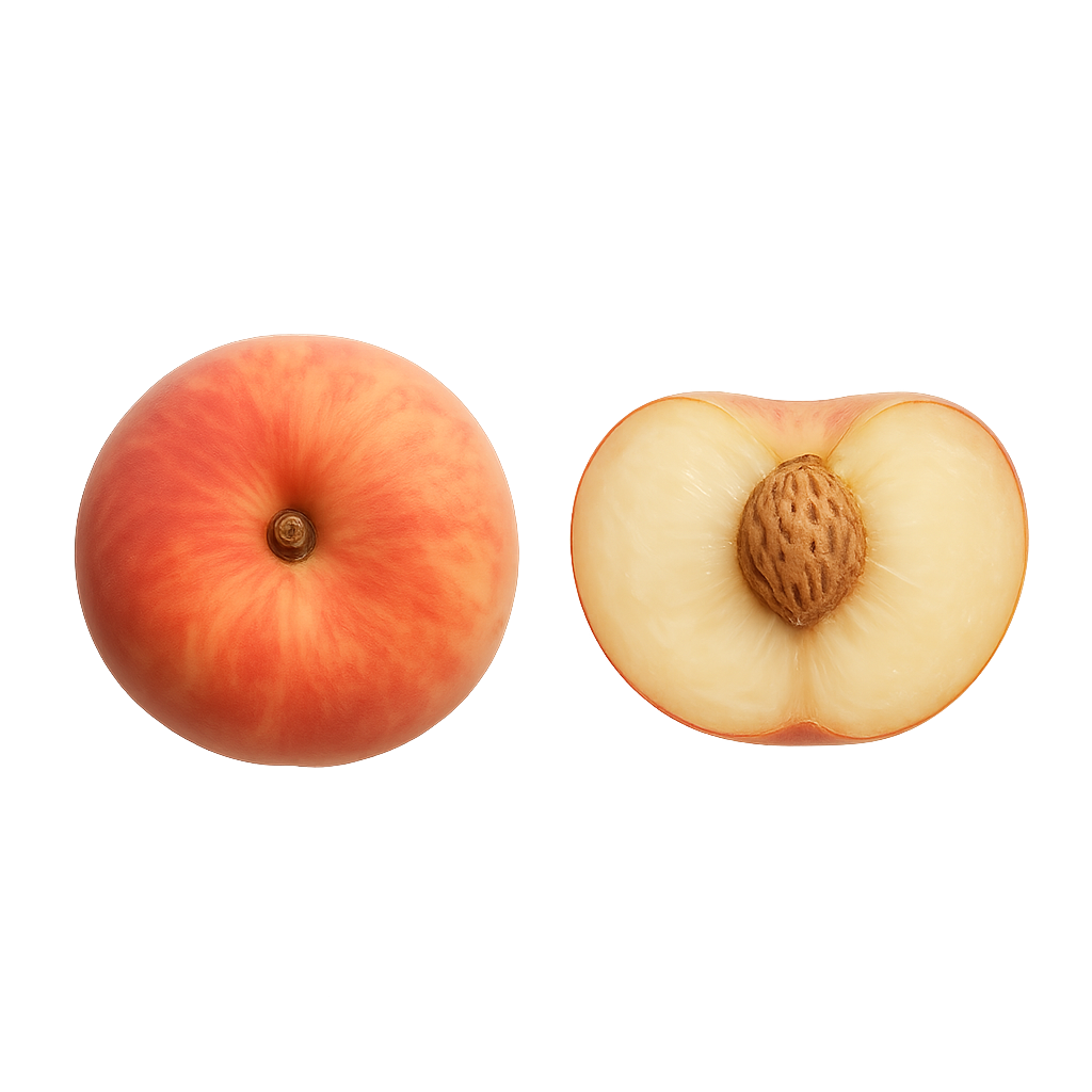 Unikalna, płaska odmiana brzoskwini. Ma biały, bardzo słodki miąższ i małą pestkę, którą łatwo oddzielić.