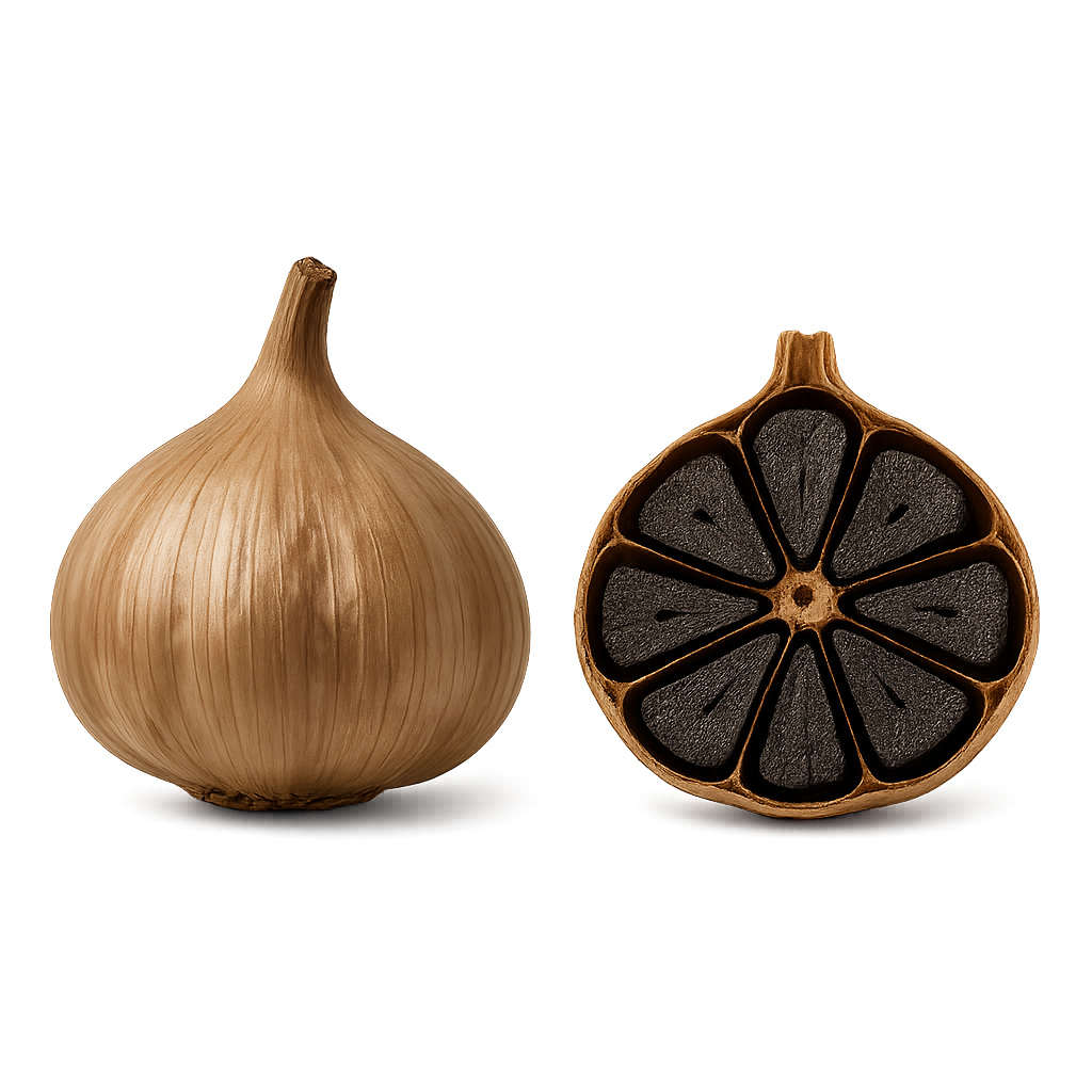 Naturalnie fermentowany biały czosnek, który po procesie "leżakowania" traci swoją ostrość, zyskując czarną barwę i unikalny smak umami.