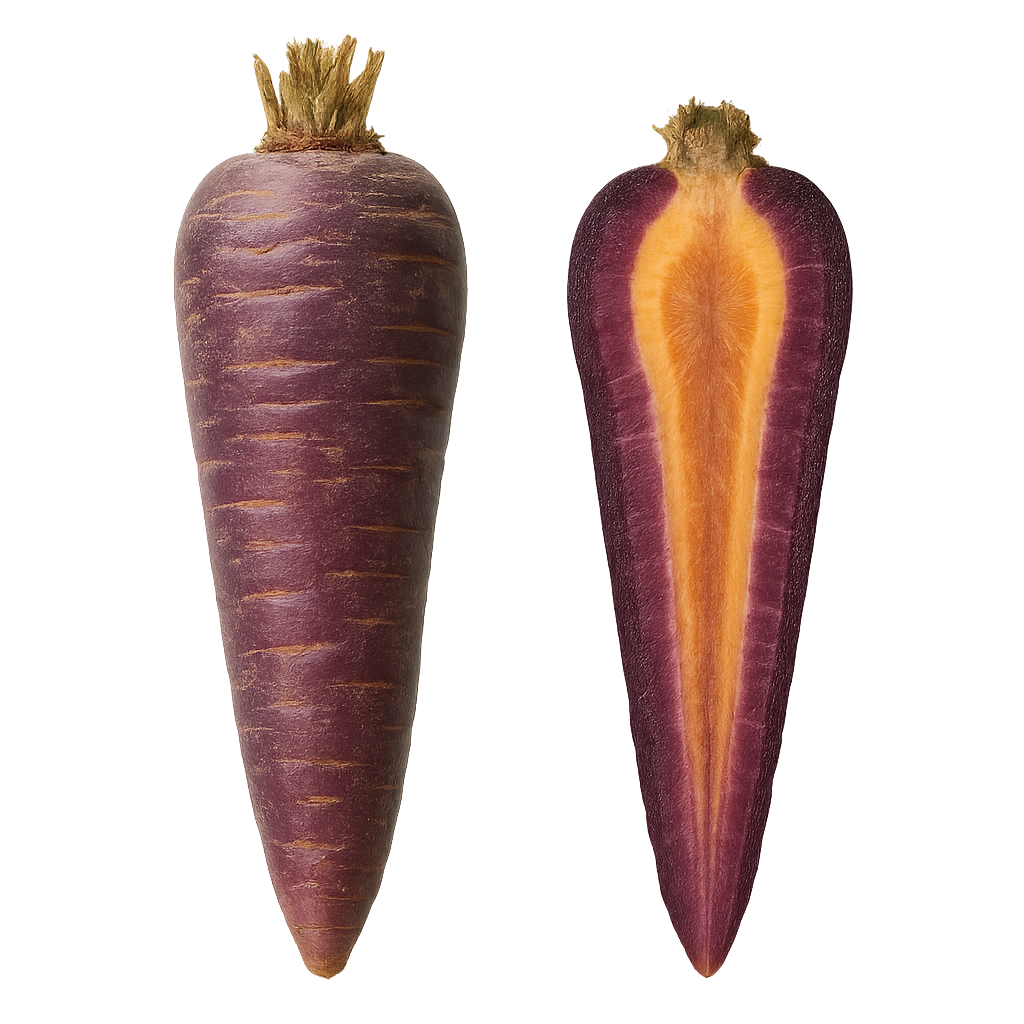 Wyjątkowa, starodawna odmiana o intensywnie purpurowym kolorze zarówno na zewnątrz, jak i wewnątrz, charakteryzująca się głębokim, słodkim smakiem.