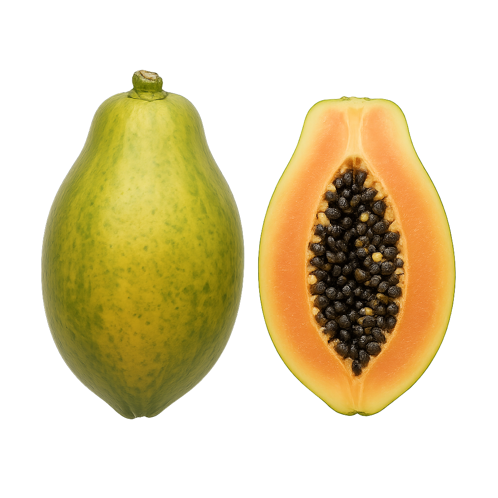 Przekrój owoc wzdłuż, usuń łyżką czarne nasiona (mają pieprzny smak, niektórzy je suszą), a następnie wyjadaj miąższ lub pokrój go w kostkę. Papaja smakuje najlepiej skropiona sokiem z limonki, która idealnie podbija jej subtelną słodycz; dojrzały owoc powinien lekko ustępować pod naciskiem kciuka – jeśli jest twardy, daj mu 2-3 dni w temperaturze pokojowej.