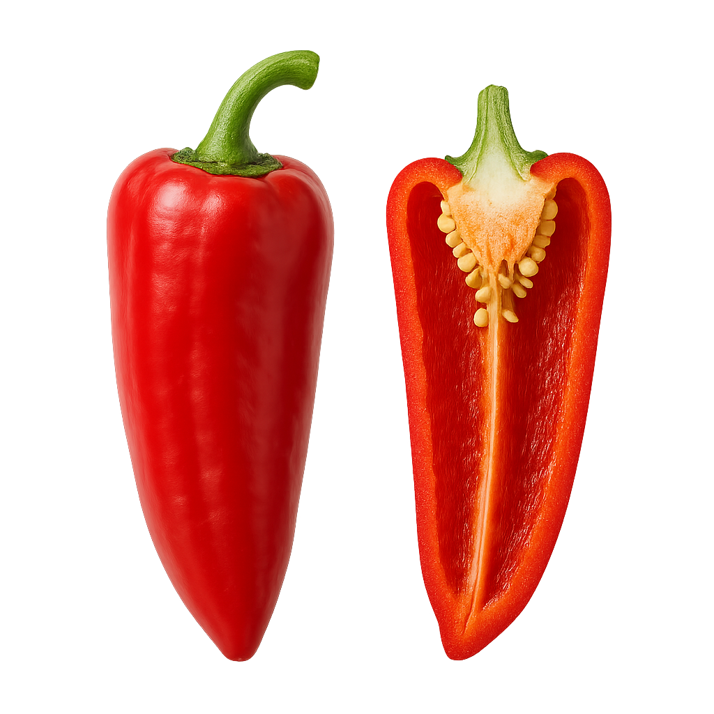 Dojrzała, słodkawo-pikantna papryka o soczystym miąższu.